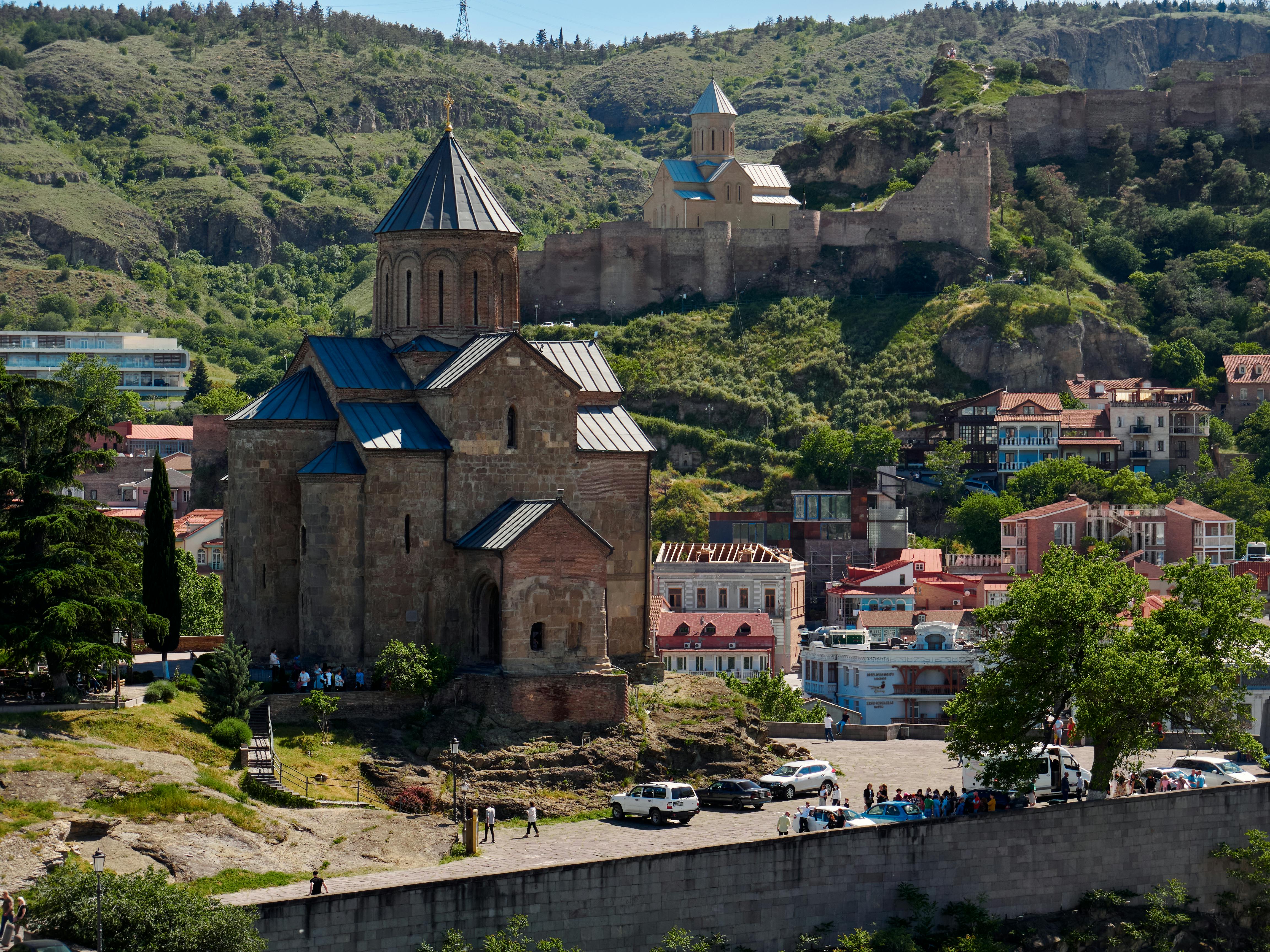 - On your arrival, meet your guide at the airport in Tbilisi. Go to your hotel for a short rest, and in the evening, have a very special walking tour of the city. During our walking tour, you will see the most important parts of old Tbilisi. You’ll start the tour at Metekhi Cathedral (XIII c.) and the Isani neighborhood, which was a royal residence in the Middle Ages. It’s a perfect place to enjoy magnificent views of the old city. Then you will take a cable car to the mother fortress of Tbilisi, Narikala (VI c.), one of the first constructions in the city. From Narikala fortress, you can see the whole city and enjoy crawling on the walls of the fortress. After, we’ll take a walk down the mountain to see the Sulfur Bath district and the only mosque in Tbilisi, where Shia and Sunni Muslims pray together, before moving on towards Shardeni Street. On the way, you’ll see Sioni Cathedral (XI c.), Anchiskhati Church (VI c.), Gabriadze puppet theater, etc.